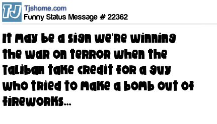 X is It may be a sign we're winning the war on terror when the Taliban take credit for a guy who tried to make a bomb out of fireworks...