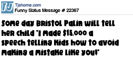 X Some day Bristol Palin will tell her child "I made $15,000 a speech telling kids how to avoid making a mistake like you!"