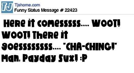 X says Here it comesssss.... WOOT! WOOT! There it goessssssss.... "CHA-CHING!" Man, Payday Sux! :P
