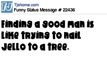 - # 69725 There are much easier things in life than finding a good man. Nailing Jell-O to a tree, for instance.
