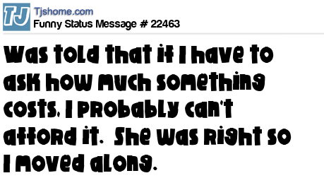 X was told that if I have to ask how much something costs, I probably can't afford it. She was right so I moved along.