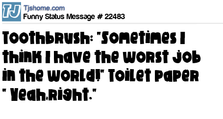 X Toothbrush: "Sometimes I think I have the worst job in the world!" Toilet paper " Yeah,right."