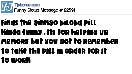 X is finds the ginkgo biloba pill kinda funny...its for helping ur memory but you got to remember to take the pill in order for it to work