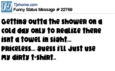 X says getting outta the shower on a cold day only to realize there isnt a towel in sight... priceless... guess i'll just use my dirty t-shirt..
