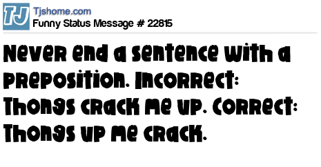 X Never end a sentence with a preposition. Incorrect: Thongs crack me up. Correct: Thongs up me crack.
