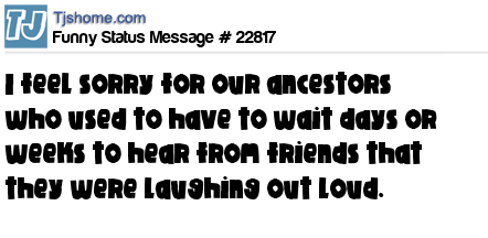 X I feel sorry for our ancestors who used to have to wait days or weeks to hear from friends that they were laughing out loud.