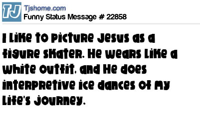 X says I like to picture Jesus as a figure skater. He wears like a white outfit, and He does interpretive ice dances of my life's journey.