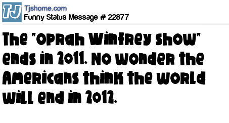 X says The "Oprah Winfrey show" ends in 2011. No wonder the Americans think the world will end in 2012.