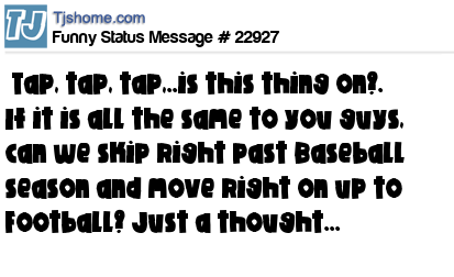 X is Tap, tap, tap,..is this thing on?. If it is all the same to you guys, can we skip right past Baseball season and move right on up to Football? Just a thought...