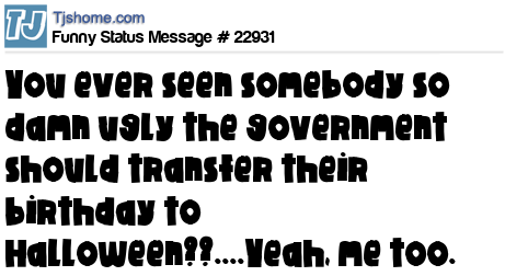 X You ever seen somebody so damn ugly the government should transfer their birthday to Halloween??....Yeah, me too.