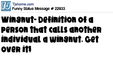 X is Wingnut- Definition of a person that calls another individual a wingnut. Get over it!