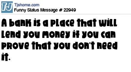 - # 3874 a bank is a place where you can lend money if you can prove you don't need it.