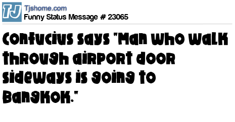 X is Confucius says "Man who walk through airport door sideways is going to Bangkok."