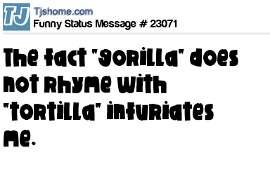 - # 145455 the fact “gorilla” does not rhyme with “tortilla” infuriates me.