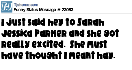 X I just said hey to Sarah Jessica Parker and she got really excited. She must have thought I meant hay.