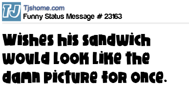 - # 109482 Guys are always saying they get their woman to make them a sandwich right after sex. If she can walk straight after having sex, you're doing it wrong! Go make your own damn sandwich!