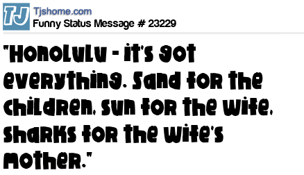 X is "Honolulu - it's got everything. Sand for the children, sun for the wife, sharks for the wife's mother."
