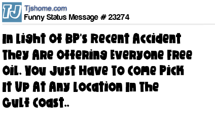 X In Light Of BP's Recent Accident They Are Offering Everyone Free Oil. You Just Have To Come Pick It Up At Any Location In The Gulf Coast..