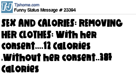X SEX AND CALORIES: REMOVING HER CLOTHES: With her consent....12 Calories ,Without her consent..387 Calories