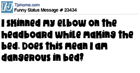 X I skinned my elbow on the headboard while making the bed. Does this mean I am dangerous in bed?