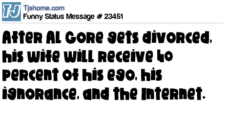 X After Al Gore gets divorced, his wife will receive 40 percent of his ego, his ignorance, and the Internet.