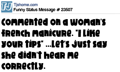 X commented on a woman's french manicure. "I like your tips" ...let's just say she didn't hear me correctly.
