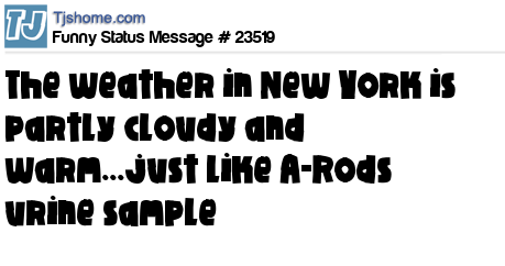 X The weather in New York is partly cloudy and warm...just like A-Rods urine sample