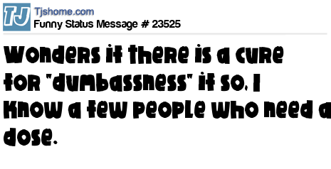 - # 26145 wonders if there is a cure for "dumbassness" if so, I know a few people who need a dose