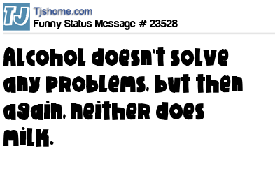 - # 4189 Alcohol doesn't solve any problems, but then again, neither does milk