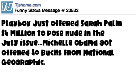 X says Playboy just offered Sarah Palin $4 Million to pose nude in the July issue...Michelle Obama got offered 50 Bucks from National Geographic.