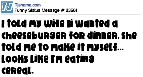 X I told my wife Ii wanted a cheeseburger for dinner, she told me to make it myself... Looks like I'm eating cereal.