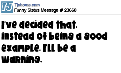 X  I've decided that, instead of being a good example, I'll be a warning.