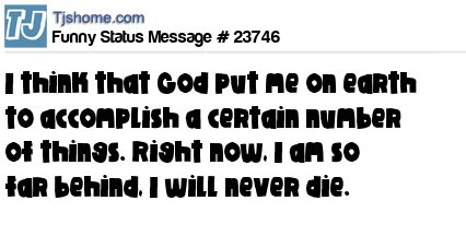 X I think that God put me on earth to accomplish a certain number of things. Right now, I am so far behind, I will never die.