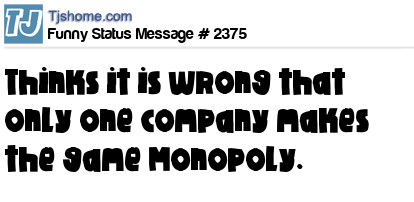 - # 104156 I find it hilarious that only one company makes the game monopoly