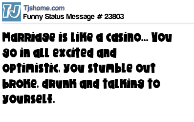 - # 103719 Marriage is like a casino...you go in all excited and optimistic, you stumble out broke, drunk and talking to yourself.