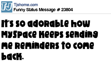 X It's so adorable how MySpace keeps sending me reminders to come back.