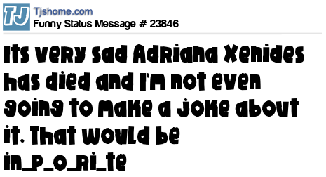 X is its very sad Adriana Xenides has died and I'm not even going to make a joke about it. That would be in_p_o_ri_te