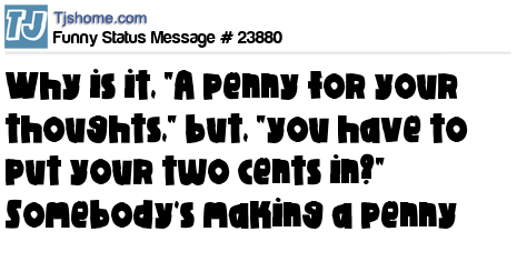 - # 51023 Why do you have to "put your two cents in"...but it's only a "penny for your thoughts" who get's the other penny......taxes