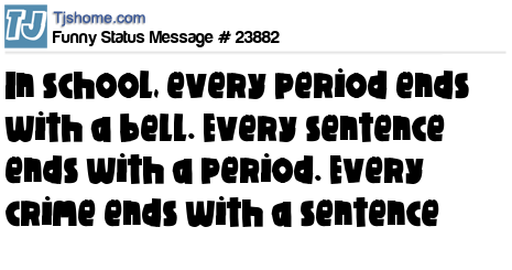 X is In school, every period ends with a bell. Every sentence ends with a period. Every crime ends with a sentence