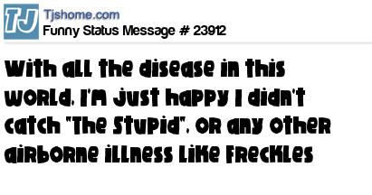 X With all the disease in this world, I'm just happy I didn't catch "The Stupid", or any other airborne illness like Freckles