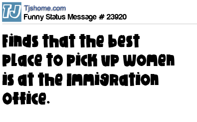 - # 27818 Finds that the best place to pick up women is at the Immigration Office.