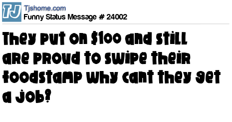 X is they put on $100 and still are proud to swipe their foodstamp why cant they get a job?