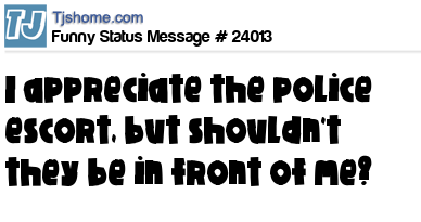 X I appreciate the police escort, but shouldn't they be in front of me?