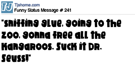 X is "sniffing glue, going to the zoo, gonna free all the kangaroos. Suck it Dr. Seuss!"