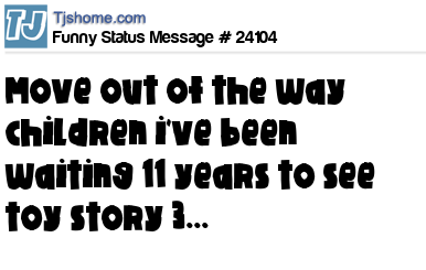 X says Move out of the way children i've been waiting 11 years to see toy story 3...