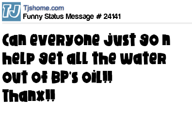 X Can everyone just go n help get all the water out of BP's oil!! Thanx!!