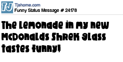 X says The lemonade in my new McDonalds Shrek glass tastes funny!