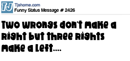 - # 12357 Two wrongs doesnt make a right...but three rights make a left.