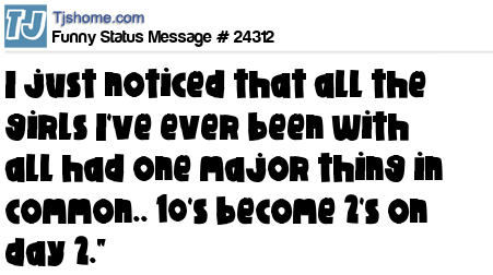 X is I just noticed that all the girls I've ever been with all had one major thing in common.. 10's become 2's on day 2."