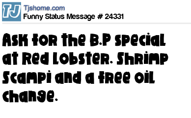 X is Ask for the B.P special at Red Lobster. Shrimp Scampi and a free oil change.